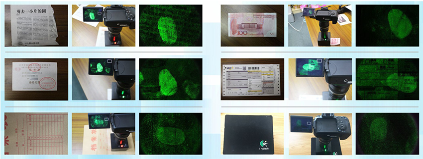 該系統(tǒng)采用光學(xué)定向原理,使效果達到標準,有效消除各類物證復(fù)雜背景的干擾,呈現(xiàn)清晰的指紋痕跡,如:紙幣、牛皮紙、報紙、發(fā)票、快遞單、雜志、皮革面、木制品等客體上的痕跡。